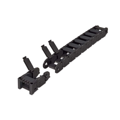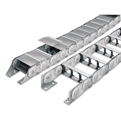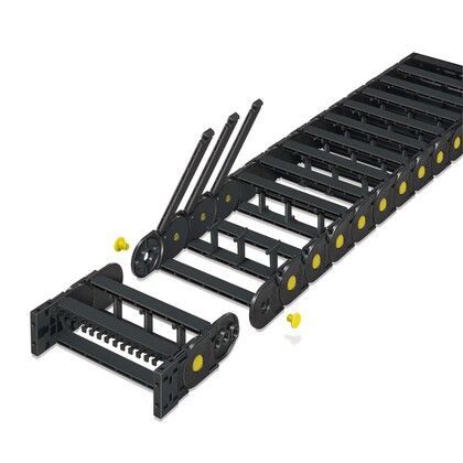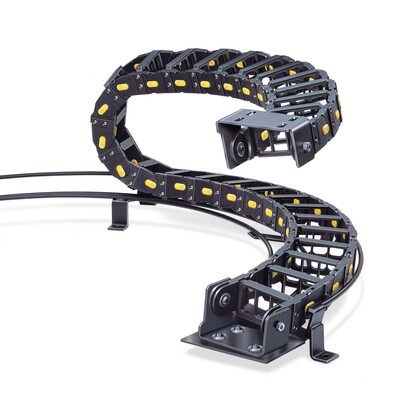 A drag chain is a mechanical system designed to contain, protect, carry and guide utilities in dynamic applications.