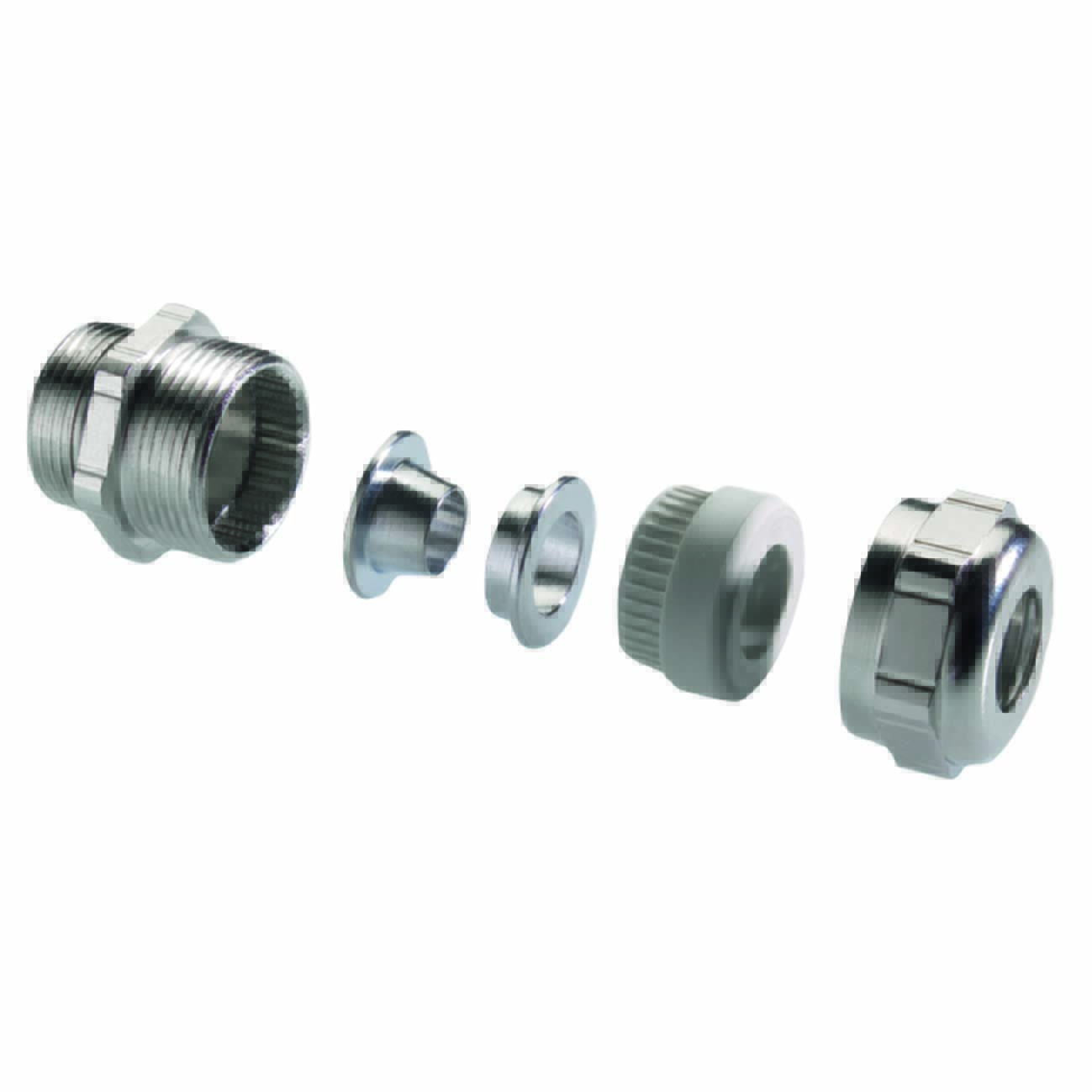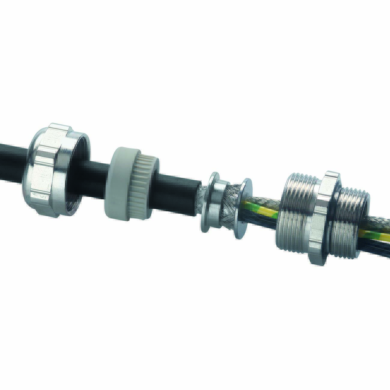 - Reliable screening even with intense vibration. This EMC cable gland provides contact reliability in any application by compressing the braided shield between a pair of cones.
