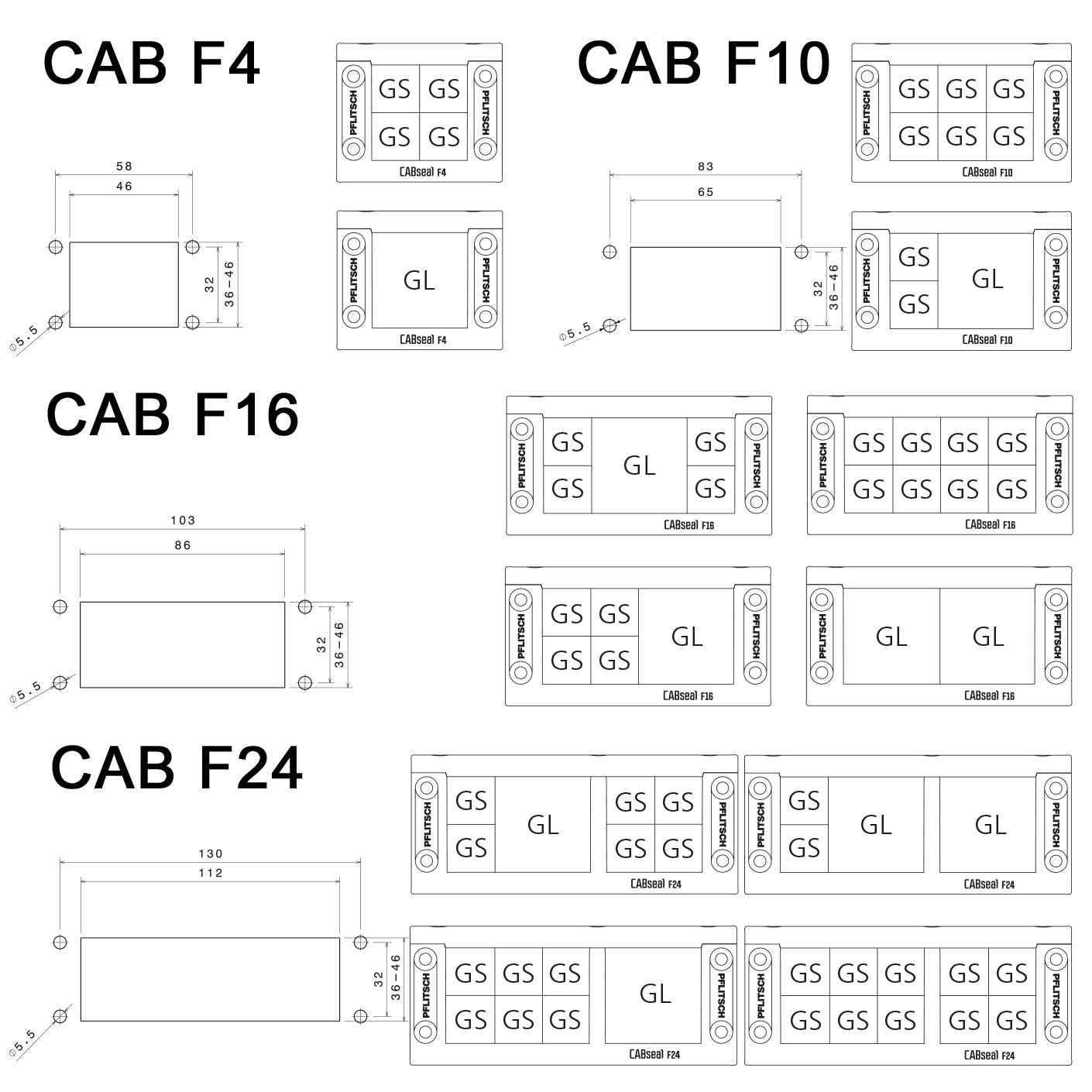 - 1 to 40 cables per frame - CABseal F4 seals up to 16 max. 6 mm cables, CABseal F24 accommodates up to 40 max. 6 mm cables