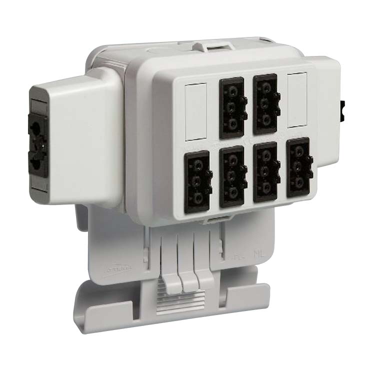 AK2 IP20 Junction box with prewired 3, 4 or 5-pole "Plug in - Plug out" and mounting plate for cable-ladders or cable-trays.