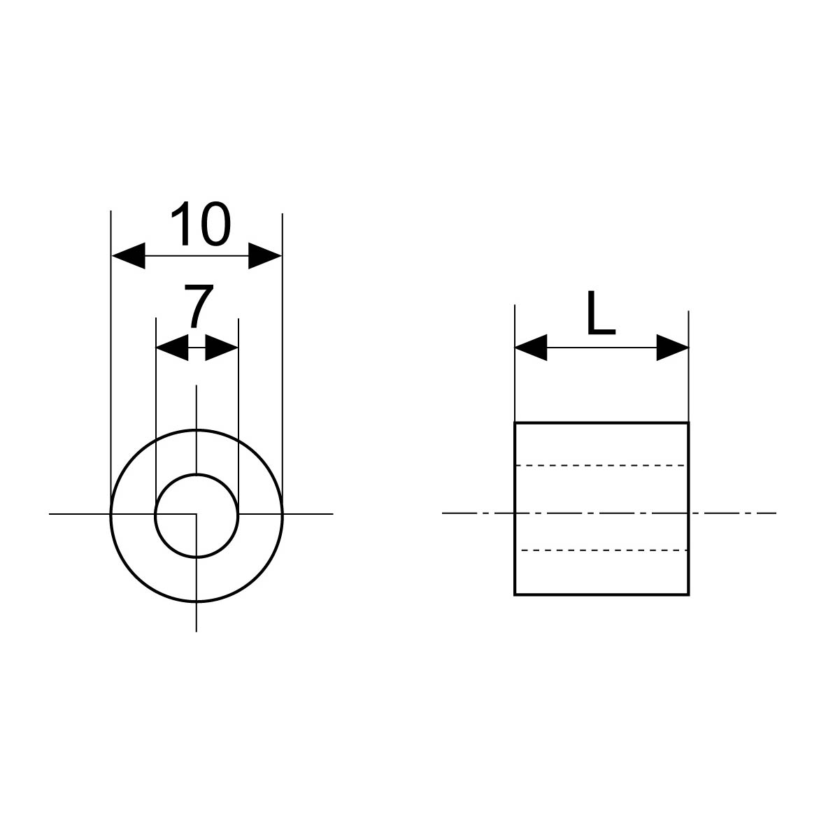Spacer bush for various applications. Standard length in mm.