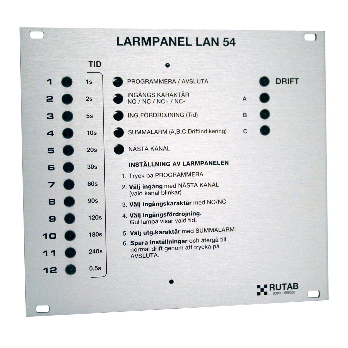 - Programming instructions and connection instructions are printed on the panel (in swedish)