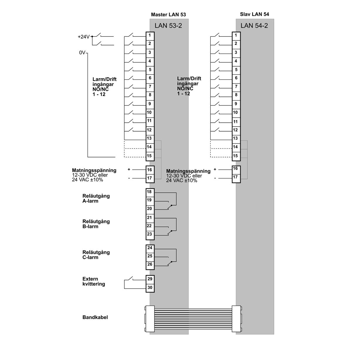 Extension module for LAN 53-2. All programming and acknowledgement is handled from the master (LAN53-2) for all connected slaves.