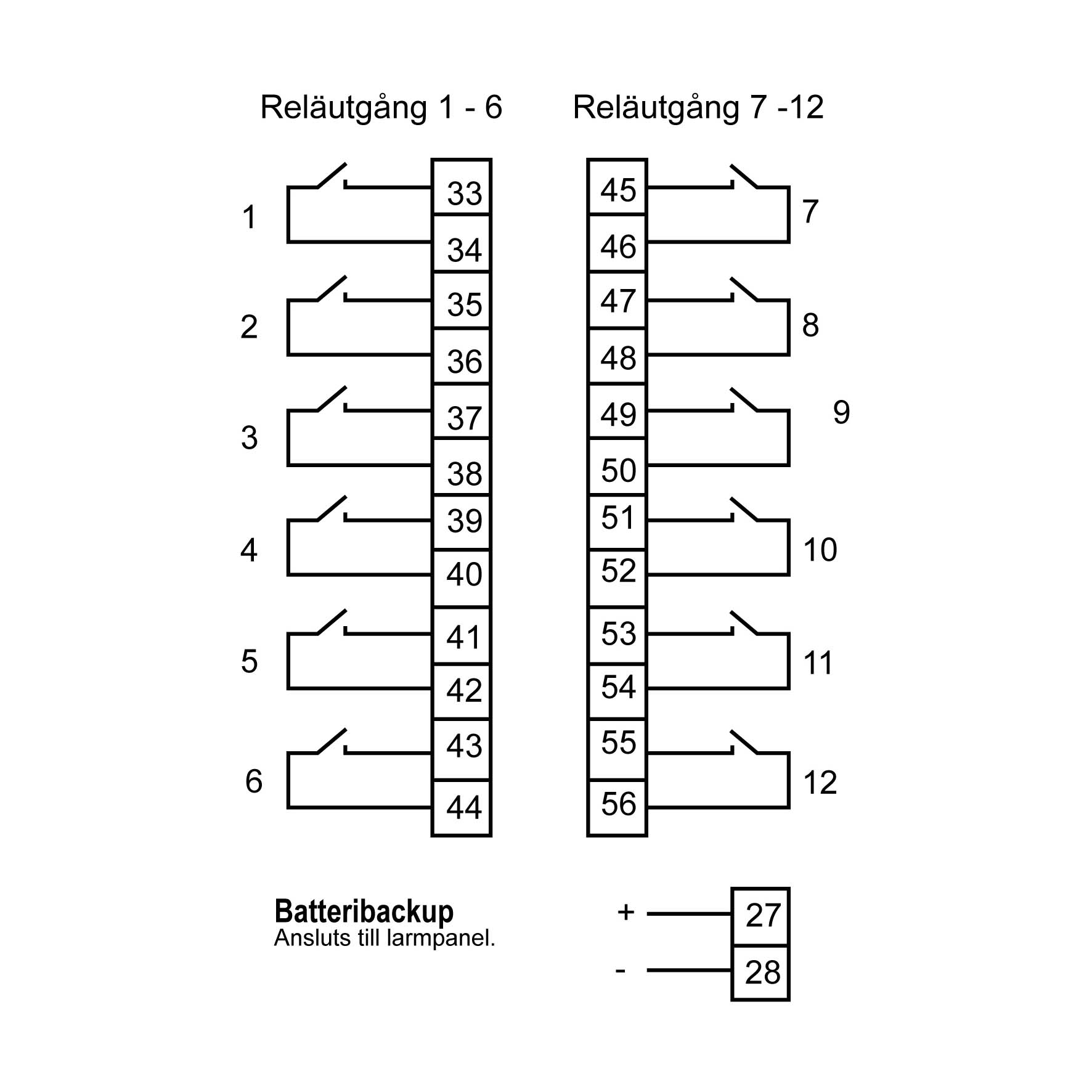 LAN 300PR har följande fördelar • Förser larmpanelen med potentialfria slutande utgångskontakter för varje kanal. • Påverkar ej panelens ordinarie funktion. • Monteras på baksidan av panelen. • Inpluggningsbara skruvplintar för alla anslutningar förenklar montaget. Allt montagemateriel levereras komplett. Kablage levereras som extra tillbehör vid montage av flera LAN 300PR. LAN 300PR/50 avsedd för montage på LAN 53/54. LAN 300PR/330 avsedd för montage på LAN 330. Då reläkortet monteras på LAN 330 skall plint 27 och 28 på reläkortet anslutas till panelens plint 27 och 28 om avbrottsfri drift önskas på reläkortet. OBS! Larmpanel med monterat parallellreläkort ryms ej i kapslingsserien KL50.